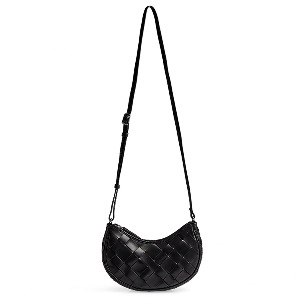 MARKBERG Denela 丹麥手工牛皮率性編織丹妮拉小半月包 月亮包 側肩包 肩背包 斜背包 (極簡黑)