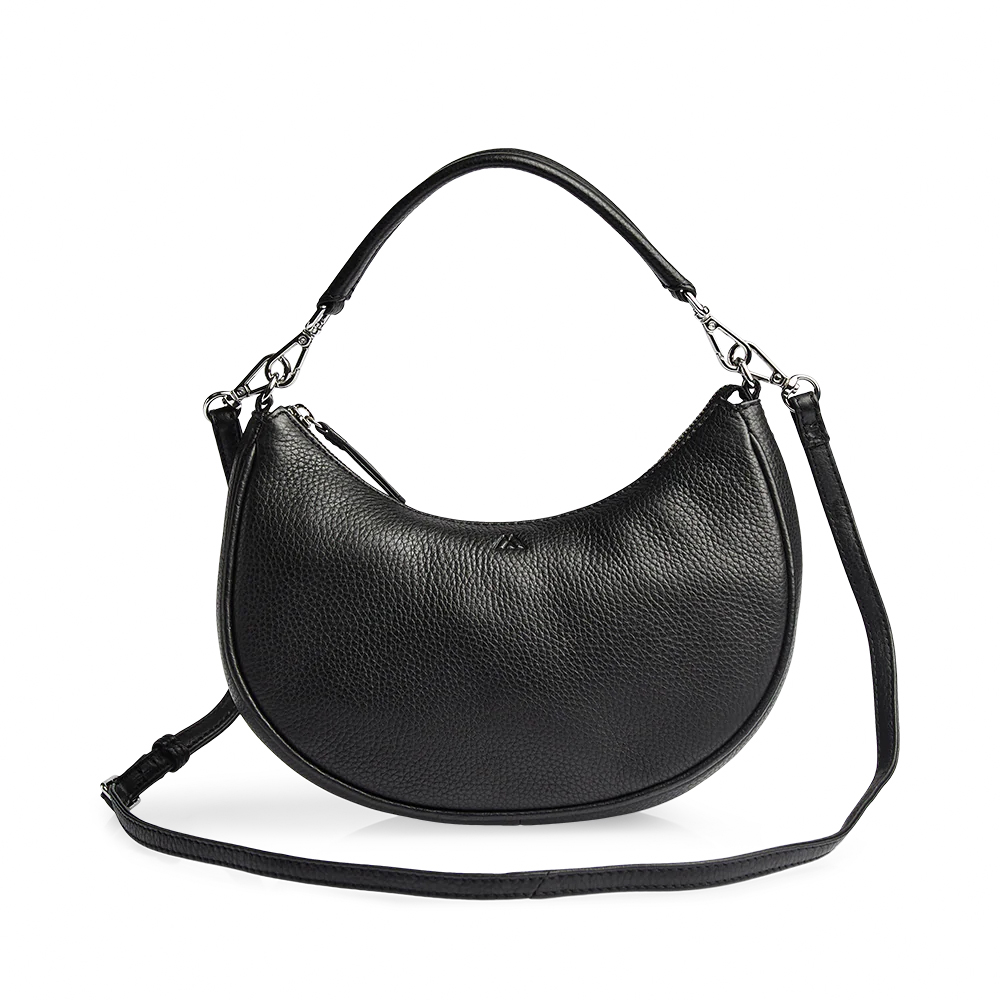 MARKBERG Helia 丹麥手工牛皮個性希莉亞兩用半月包 月亮包 側肩包 肩背包 斜背包 腋下包 手提包 (極簡黑)