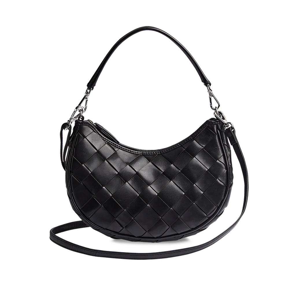 MARKBERG Helia 丹麥手工牛皮個性編織希莉亞兩用半月包 月亮包 側肩包 肩背包 斜背包 腋下包 手提包 (編織黑)