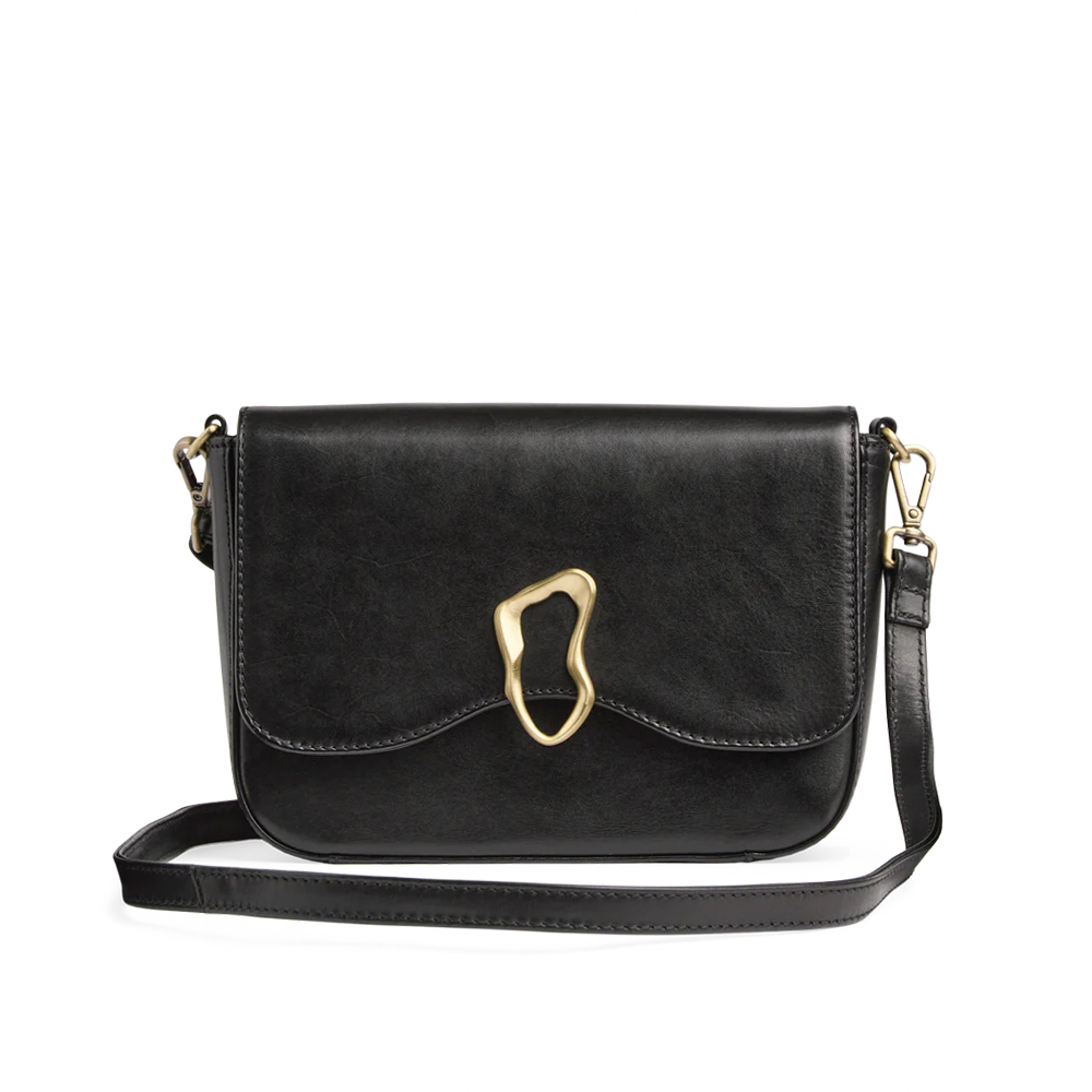 MARKBERG Morgana 丹麥手工牛皮時尚莫甘娜謎光釦飾多夾層方包 肩揹包 斜背包 側肩包 (極簡黑)