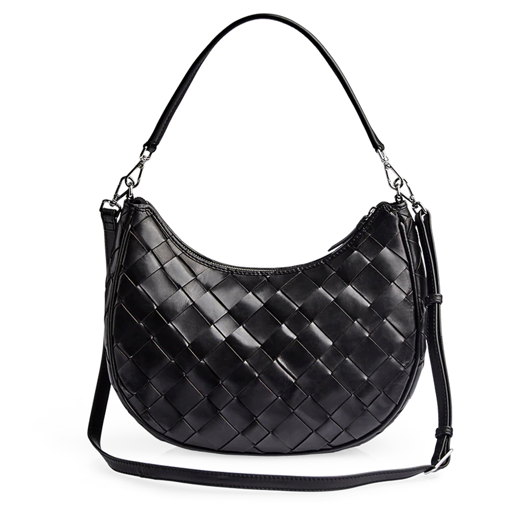 MARKBERG Novia 丹麥手工牛皮個性編織諾維亞兩用大半月包 月亮包 側肩包 肩背包 斜背包 腋下包 手提包 (編織黑)